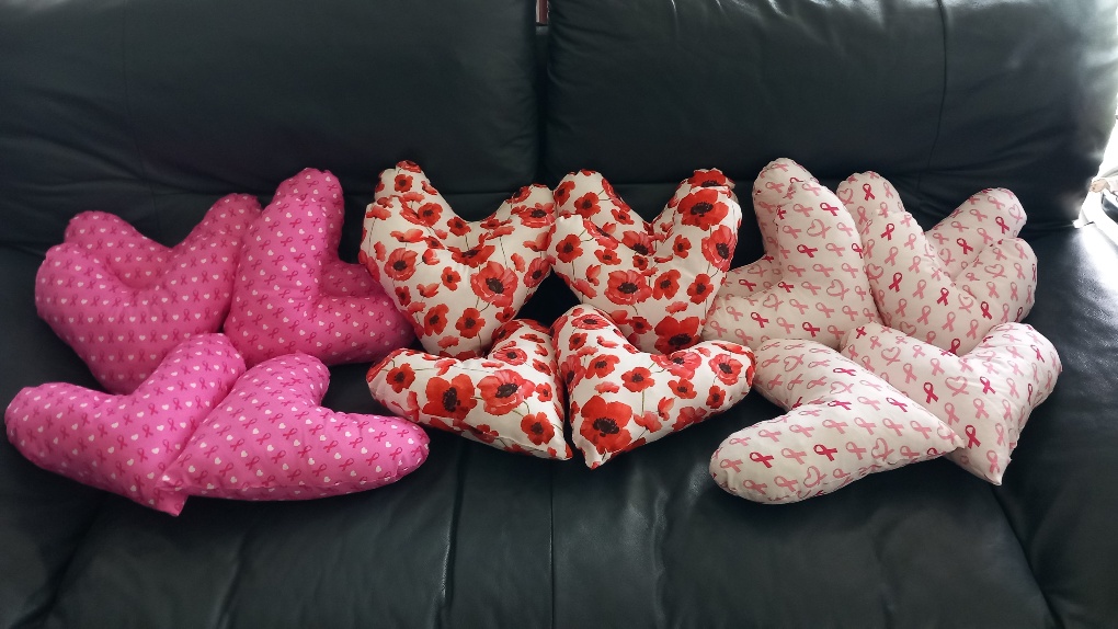 Don de coussins coeur Février 19 février 2026 Un grand merci à Viviane Da Silva, patiente, qui a fabriqué 18 coussins cœur pour les autres patients 🙂