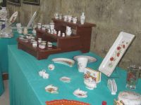 Les artistes au travail (Micheline au patchwork, Annie au pastel et Simone à la peinture sur porcelaine).