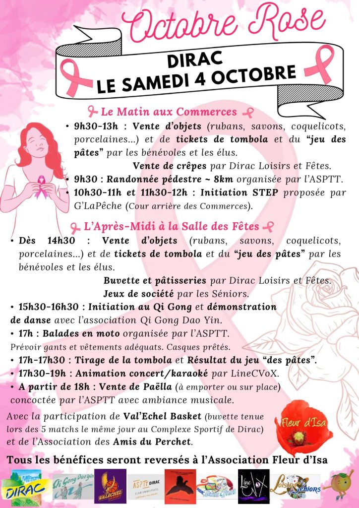 La Mairie a tenu à organiser comme les années passées, Octobre Rose au profit de Fleur d’Isa, et nous l’en remercions (Tout spécialement Bénédicte et Anne)