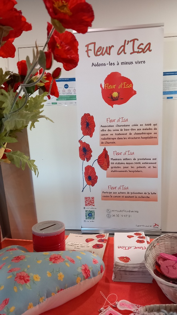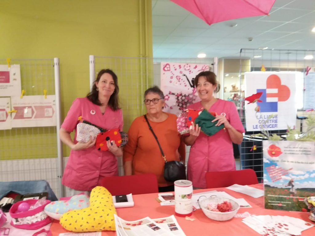 Des pochettes pour les patientes, ont été remises par Martine (petits bonnets de l’espoir). Elle les fabrique elle-même.