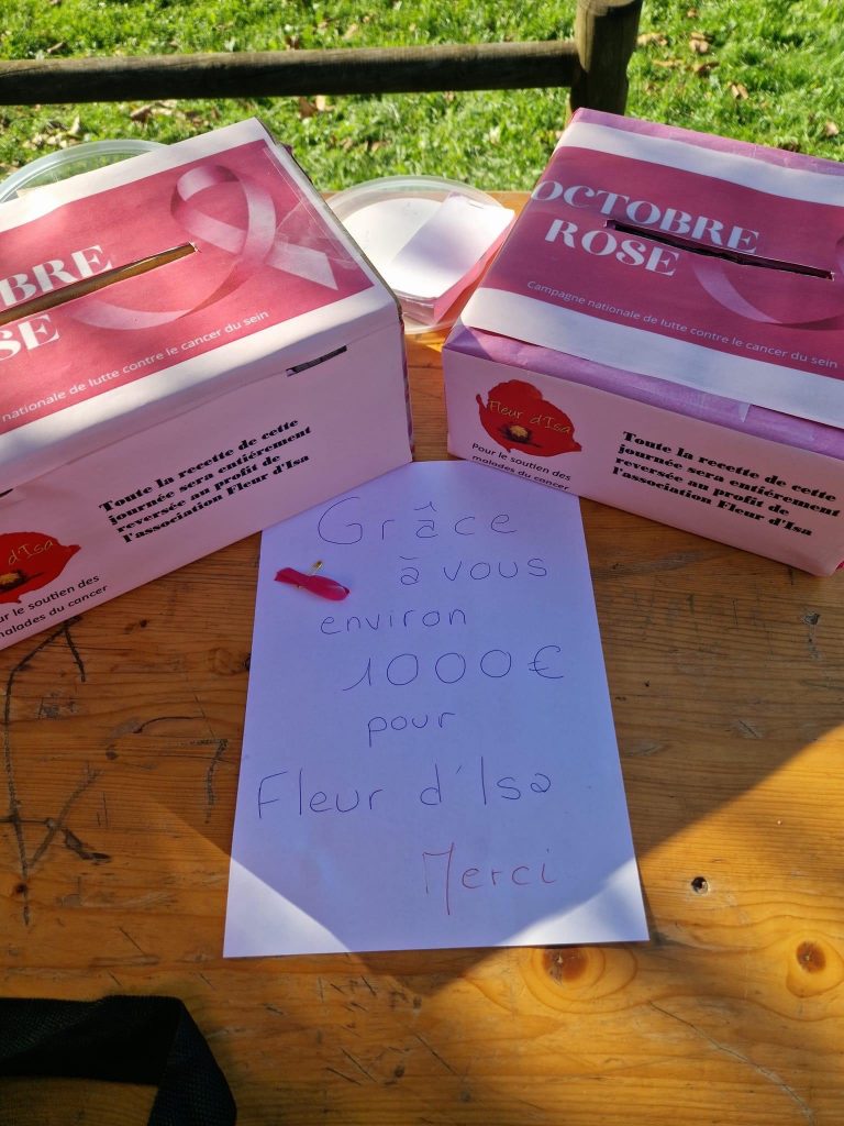 Merci à Jean-Louis, Jean-Luc et Maïté d’avoir assuré une présence de Fleur d’Isa sur cette marche, Merci aux organisateurs de nous avoir invités, comme l’an dernier, et Merci aux marcheurs qui ont permis de constituer cette belle cagnotte.