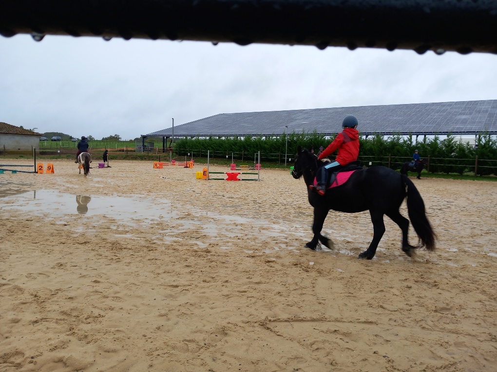 Malgré une météo peu clémente, les jeunes et moins cavaliers ont pu s’adonner à leur sport favori. (maniabilité, saut d’obstacle)