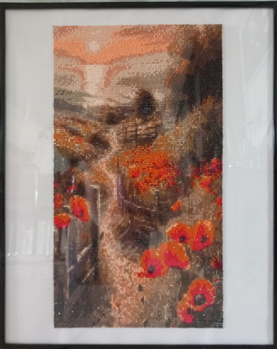 Coquelicots perles marron cadre noir Gourville L40 H51