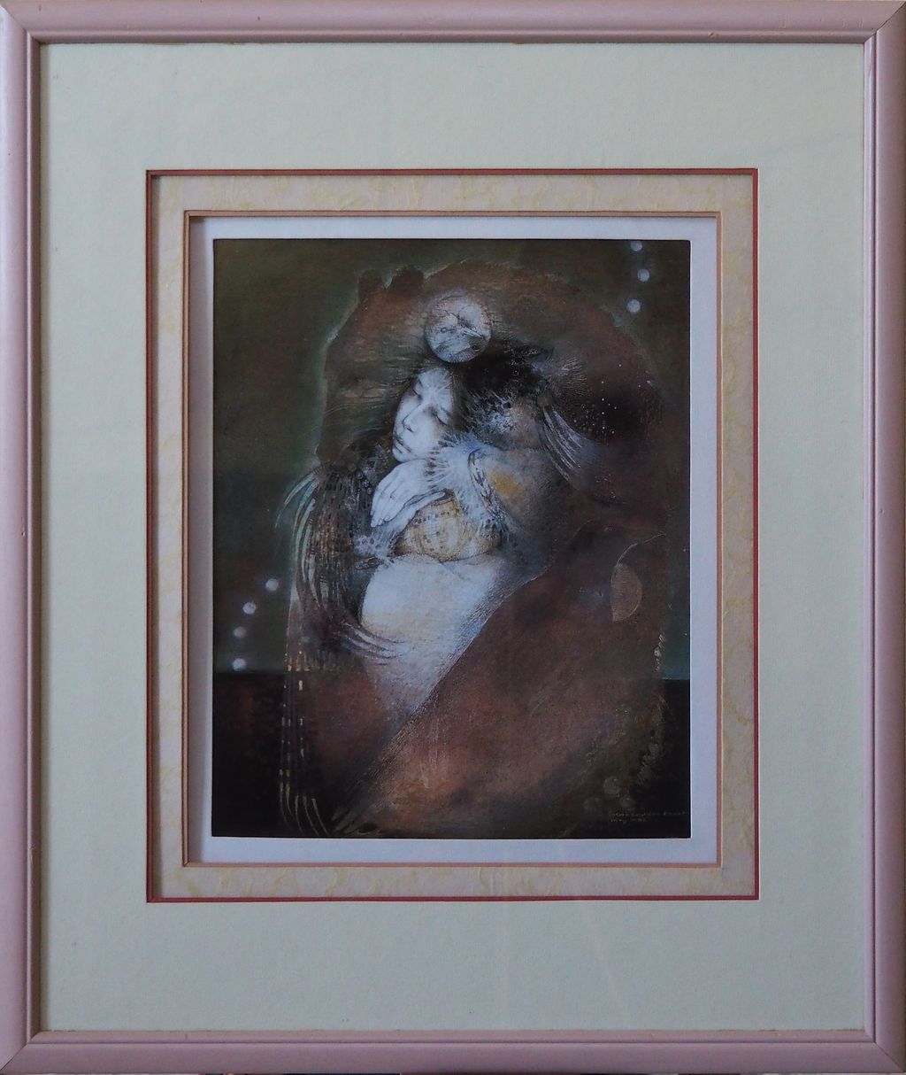 Encadrement rose femme oiseau SEDDON-BOULET