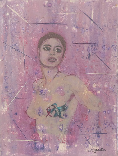 Femme colibri sein rose GALLOU Marie-Christine L30 H40