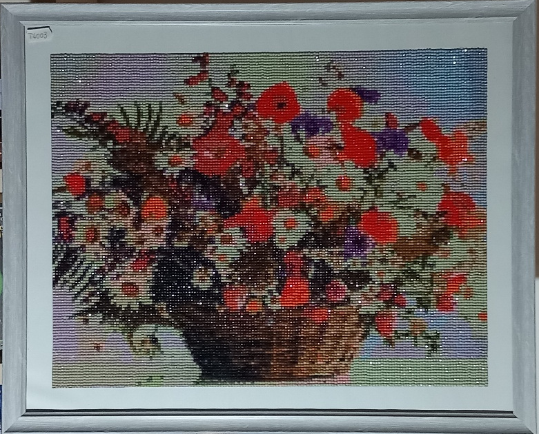 panier coquelicots en perles cadre gris Atelier Gourville Michèle L53 H43