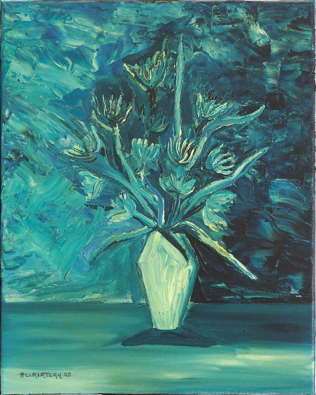Toile bouquet de fleurs sur fonds bleu CLAIRTEAU Pascal L33 H41