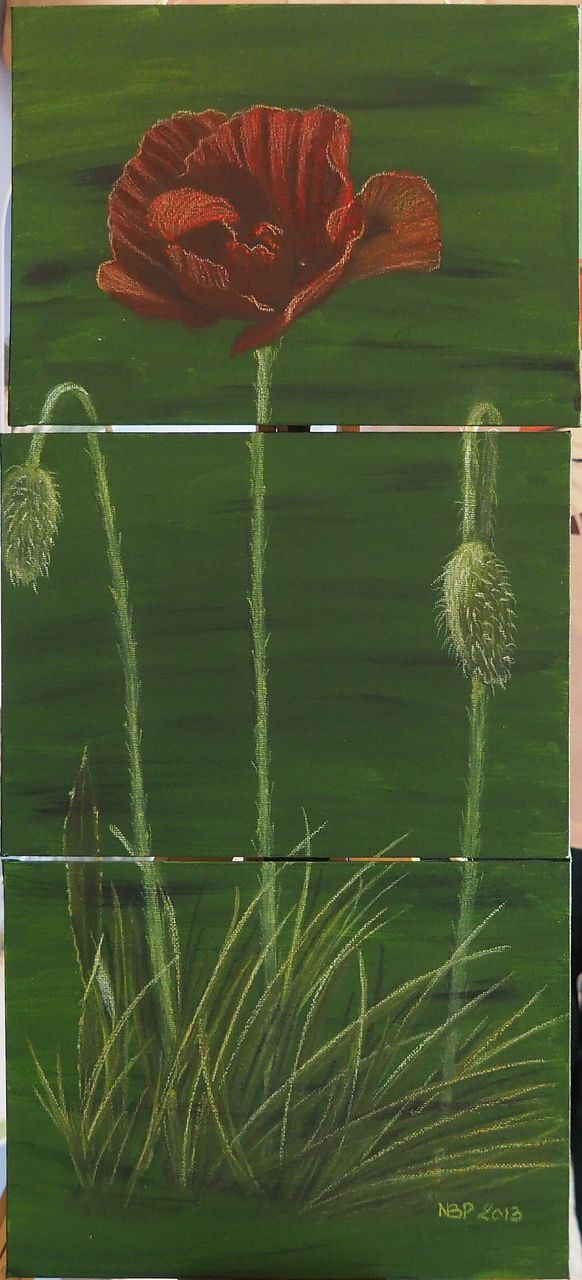 Triptyque toiles coquelicot reliées ficelle BAUDRY PAUMIER Nathalie L24 H54