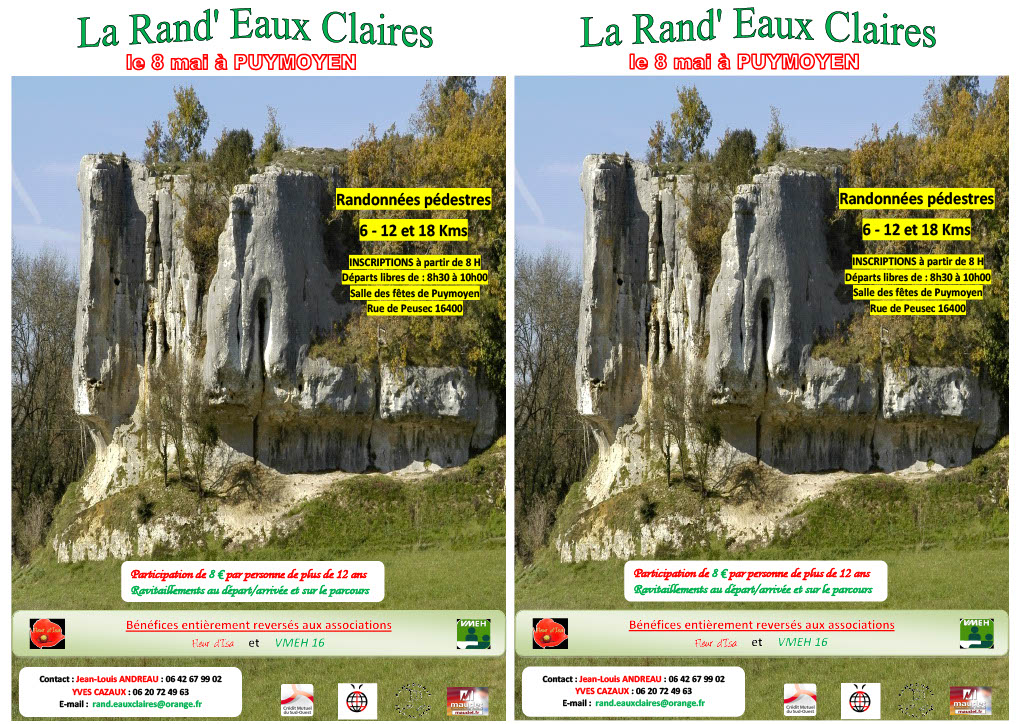 Si vous aimez la randonnée au milieu de magnifiques paysages, vous êtes invités à participer à la balade « Rand’Eaux Claires », dans la magnifique vallée des Eaux Claires à Puymoyen et ses alentours.