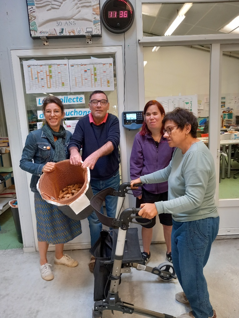 Dans le cadre de la récolte de bouchons en liège au profit de Fleur d’Isa, Claudine Rivault a organisé une rencontre avec l’équipe qui a en charge la récolte des bouchons à l’ESAT : Marine, Véronique et Jérôme.