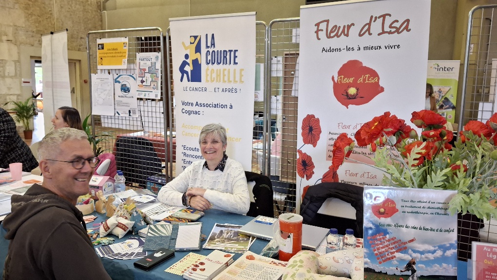 Nous avons eu des échanges intéressants avec les autres associations présentes (La Ligue contre le Cancer, La Courte Echelle, Les soins Palliatifs, Phil’Emotion, Le Casa, Domytis, Stella, Laurence de l’Hôpital de Cognac (Communication), Marie Collet Psycho-socio-esthéticienne, …)